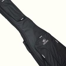 Bass guitars usually have four strings, tuned to E A G D (one octave below the bottom four strings of a guitar). Five string (and occasionally six string) basses are becoming more common lately. They are either played with a plectrum (some players prefer a bass pick which is larger than a normal plectrum) or by finger picking. Can have either an acoustic hollow body or a solid electric one.